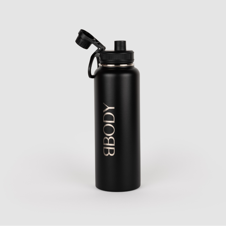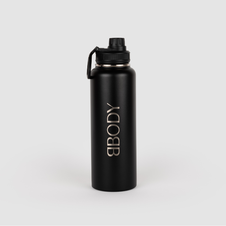 The BBODY stainless steel bottle in size EXTRA LARGE (1300ml) perfect for long days and busy moments. Made of sturdy 18/8 stainless steel and thanks to the thermo 3D insulation your drink stays nice and warm or ice cold, wherever you go.