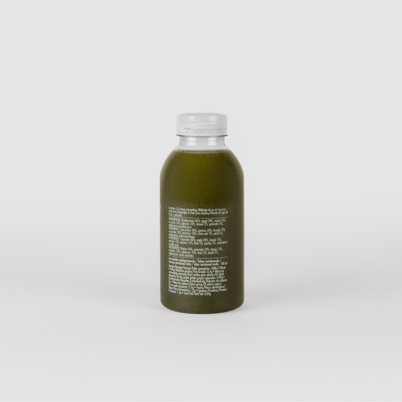 Unieke mix van ingrediënten: Met komkommer, appel, venkel, courgette, spinazie, limoen en peterselie voor een uitgebalanceerde, verfrissende smaak.