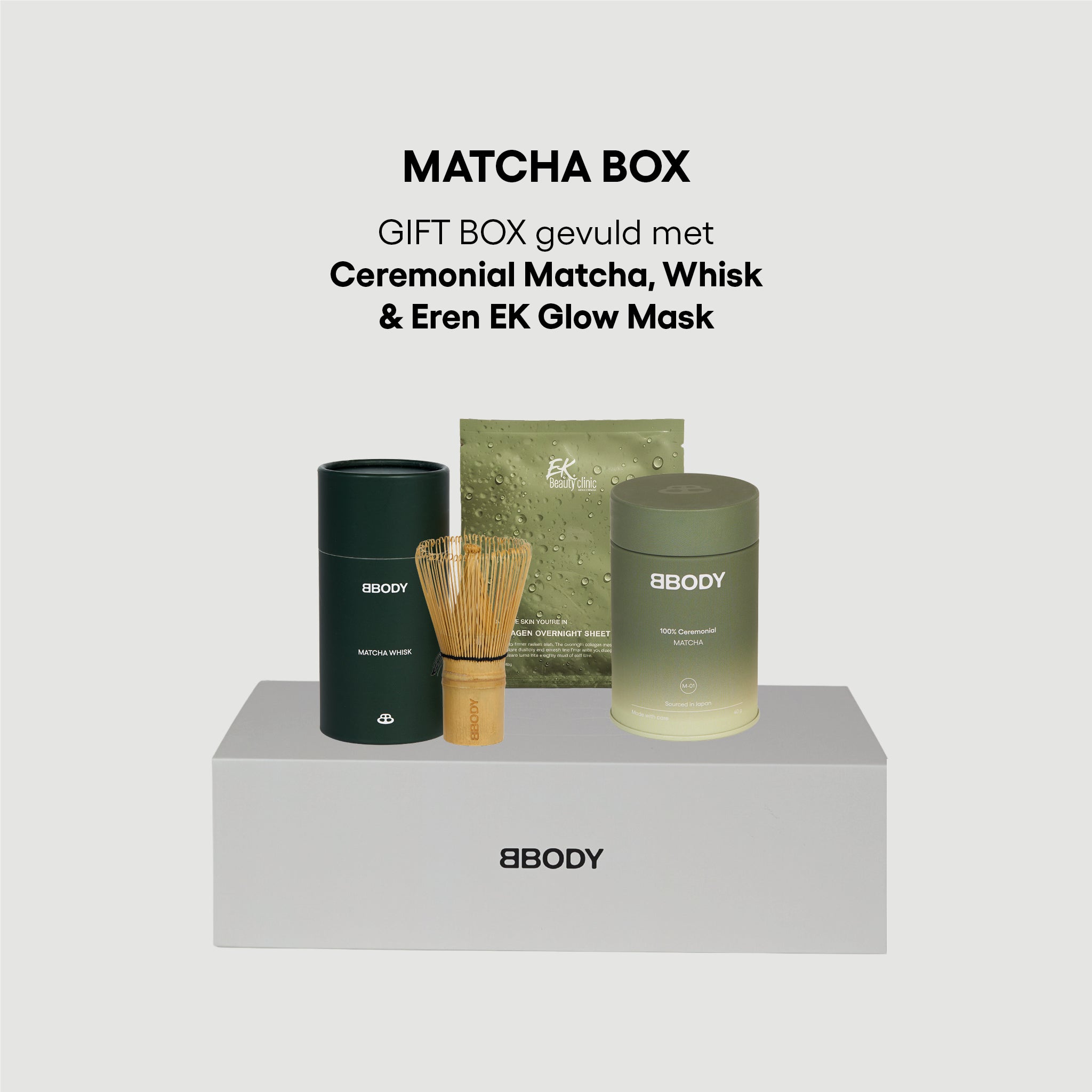 In deze box vind je Ceremonial Matcha, een Matcha Whisk en het Eren EK Glow Sheet Mask. Alles wat je nodig hebt!