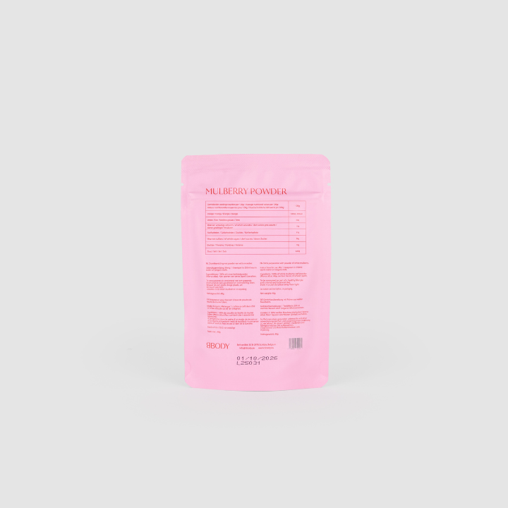 Premium sourcing: BBODY kiest steevast voor de beste kwaliteit, en deze mulberry powder is daar een perfect voorbeeld van.