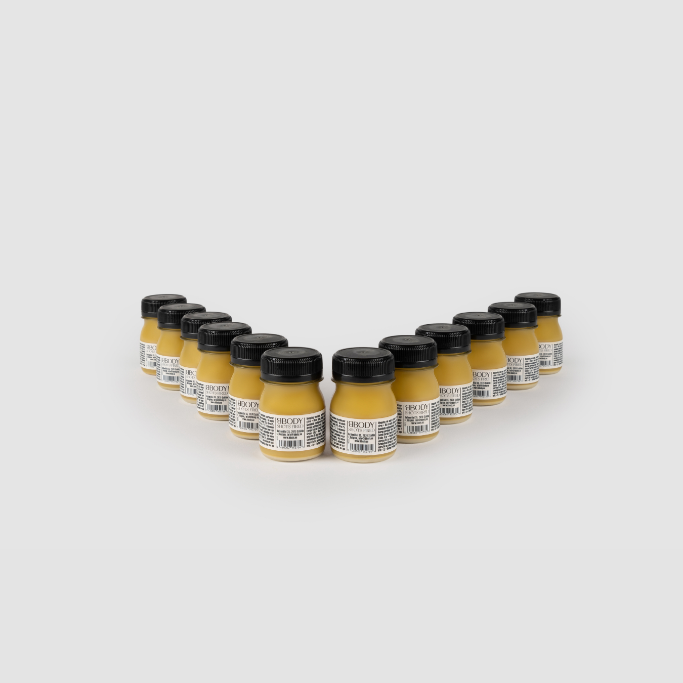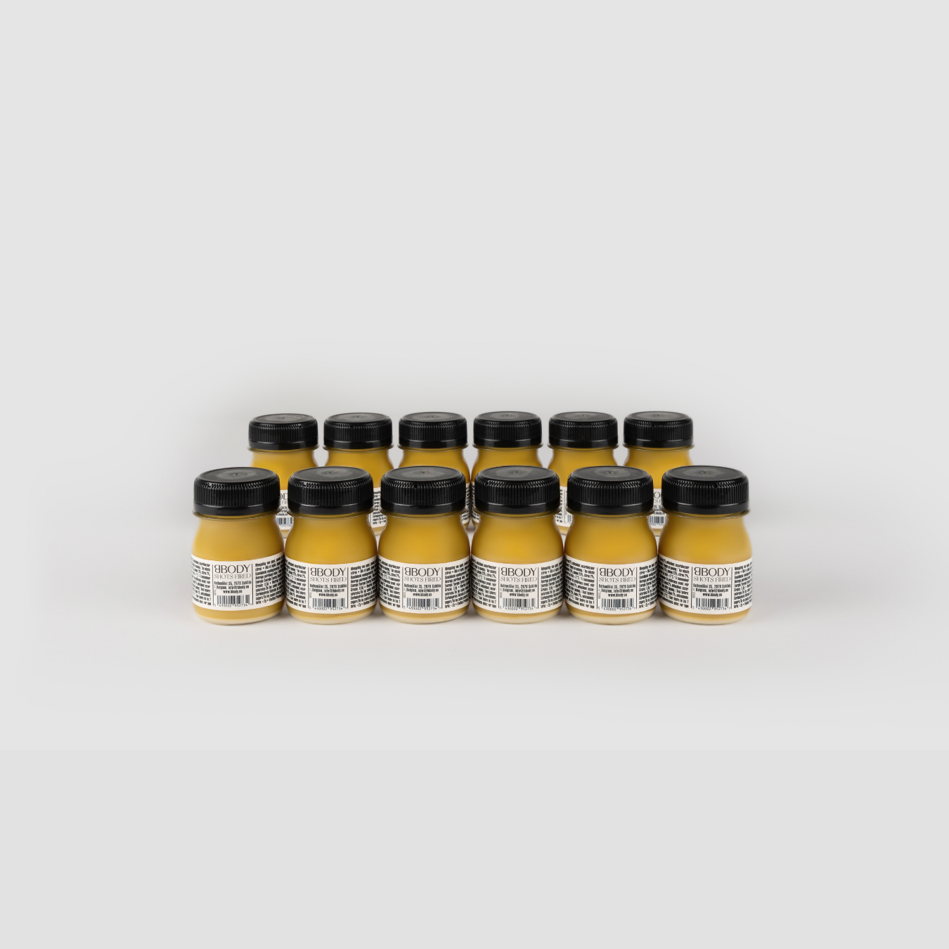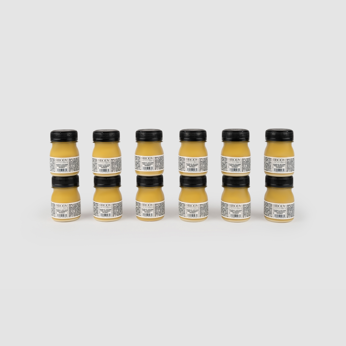 De Gember + Kurkuma + Zwarte peper shot van BBODY is ideaal om je dag een pittige boost te geven. Elke shot is zorgvuldig samengesteld met 64% appel, 20% gember, 12 % citroen, 4% kurkuma en een snufje zwarte peper, voor een intense en verfrissende smaak. Deze shots zijn perfect om als opkikker te gebruiken, of het nu in de ochtend, middag of na een maaltijd is. Je kan hem als shot nemen, of als thee drinken door de shot te mixen met warm water (en wat honing). Door deze box te kopen, geniet je van een gereduceerd tarief en heb je altijd een verfrissende en gezonde oppepper bij de hand.